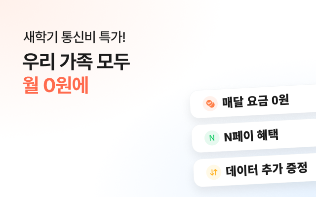 - 당사의 사정에 따라 조기 종료, 변경될 수 있으며, 가입 후 명의변경/ 해지/ 요금제 변경 시 할인 종료됩니다.